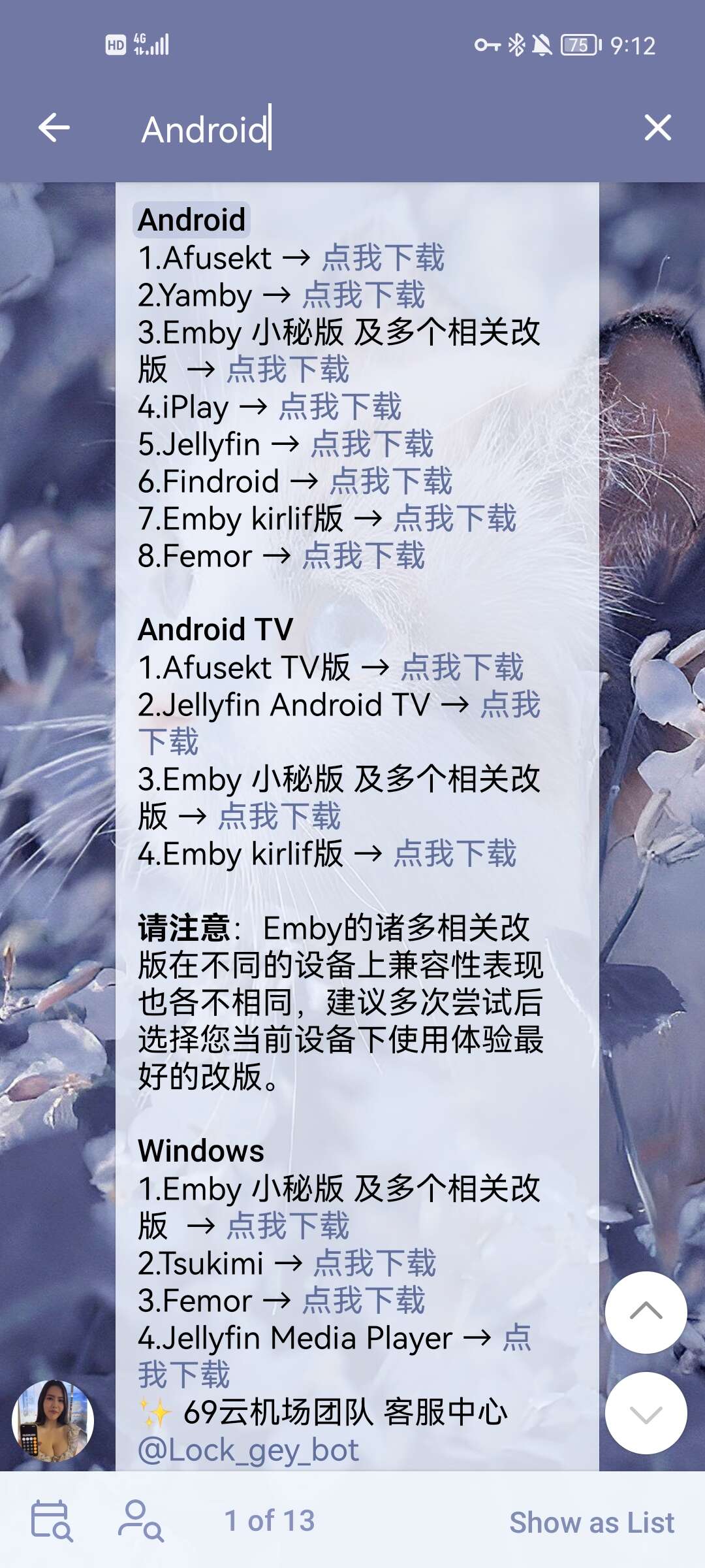 69云机场的emby支持安卓和windows客户端如下: